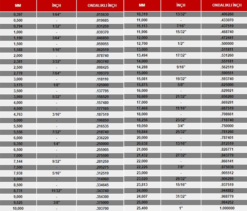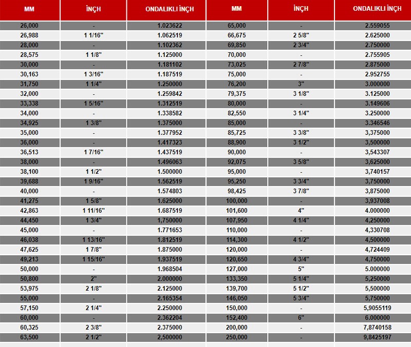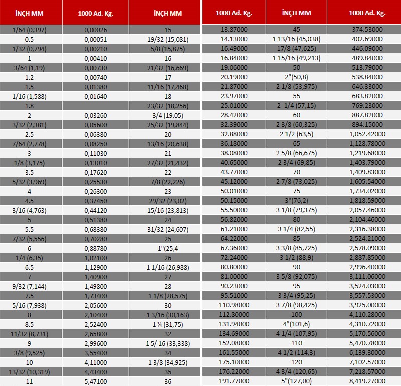• ÖLÇÜ AĞIRLIK TABLOSU: 2